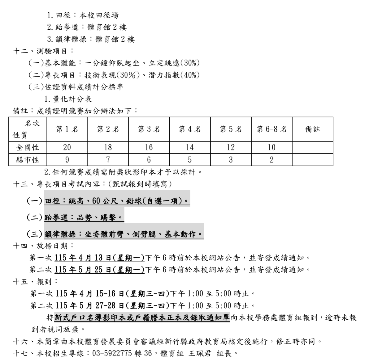 【學務處】115學年度體育班甄選招生簡章公告,歡迎下載報考。